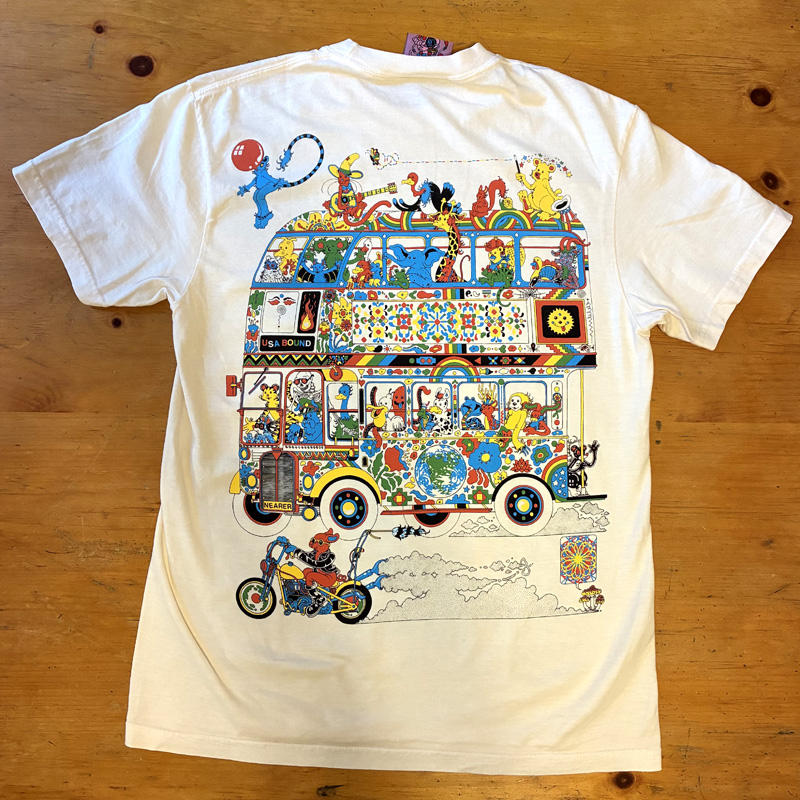 ![]() SIGN UP HERE ![]() ![]() ![]() ![]() Service Station Short Sleeve Tea-Shirt Fill up your teapot Metamorphis meets Mushrooms use cow tools To fix a Bio-Diesel Engine Infected with a Chantrelle On back Double Decker Prankster Parody MAX USA BOUND not Further it's NEARER Hog on a Hog it's pure gas live from Zillah, Washington PRO SILKSCREENED THIS TIME. By Beezer Printing 5 Color Front and Back Confused Red/Orange, Highlighter Yellow, This new Green I like Blue and Gas Black INTERNATIONAL ORDER NORMALLY AND EMAIL ME TO ARRANGE SHIPPING TO YOUR ZONE The butterfly antenna are so thin some didn't print correctly If that sort of thing bothers you please don't order this one 548 Available Size Chart HERE Use drop-down menu to select size BEFORE ordering $65 U.S. ppd SOLD OUT![]() ![]() ![]() ![]() Quilted Seashell Short Sleeve T-Shirt A Porcupine Uses his Quills to Quilt the sound of a Conch Shell One Auspicious symbol meets Jane Stikle's 225 Quilt Patterns done on the back of a sea turtle Who Quilts Sea Shells on the Sea Show while listening to the sound of a Conch Shell PRO SILKSCREENED THIS TIME. By Beezer Printing 4 Color Front and Back Starfish Orange, Kelp Green, Coral Blue, Recycled Fabric Black INTERNATIONAL ORDER NORMALLY AND EMAIL ME TO ARRANGE SHIPPING TO YOUR ZONE 548 Available Size Chart HERE Use drop-down menu to select size BEFORE ordering $65 U.S. ppd SOLD OUT![]() ![]() ![]() ![]() Tiger Tai Chi for the Coach Long Sleeve T-Shirt w/Sleeve Prints Collapse Into a Stripe A Stone Frog Gets transported by a Crane to Heaven Above PS 192 As a Tiger Shadow boxes and meditates himself into a rug The "Coney Island Baby" Mountain range Journey to the Shu by Qiu Ying Hudson River Meditations Daily Practice I wanna do Tai Chi for the Coach PRO SILKSCREENED THIS TIME. By Beezer Printing 4 Color Front and Back Mandarin Peach, Eternal Sunflower, Stone Grey, Qi Black INTERNATIONAL ORDER NORMALLY AND EMAIL ME TO ARRANGE SHIPPING TO YOUR ZONE 548 Available Size Chart HERE Use drop-down menu to select size BEFORE ordering $75 U.S. ppd Only Small left ![]() Brian Blomerth's Lilly Wave 220 Pages Lovingly & Beautifully printed/released by the kind people of Anthology Editions Wide release--October 29th,2024 or wherever fine books are sold An experimental children's book on Ketamine. A visual biography of John C. Lilly You can purchase and view sample images HERE ![]() ![]() ![]() ![]() Worm World Short Sleeve Black T-Shirt A reimagining of The Drain World Concept On Black in honor of Wormholes And the Noble Worm Put a Lotus Flower on a Piano Yama protects Piano Roll Samsara While the guru talks about it Worm Goes Directly from Worm to Rainbow Body Cast that hook into Bardo Pond And get reincarnated as the greatest worm in the world PRO SILKSCREENED THIS TIME. By Beezer Printing 6 Color Front and Back Wormhole White, Perpetual Pink, Eternal Sunflower, Ghost Green, Buddha Blue, Pure Black 2XL will take an extra 2 weeks to ship INTERNATIONAL ORDER NORMALLY AND EMAIL ME TO ARRANGE SHIPPING TO YOUR ZONE 548 Available Size Chart HERE Use drop-down menu to select size BEFORE ordering $65 U.S. ppd SOLD OUT![]() ![]() ![]() ![]() Sprinkle's Glow Mineralogy Short Sleeve Sleeve T-Shirt Luray Caverns The Greatest Cave in Virginia and some say the World is also home too The Great Stalactite Organ World's Largest Musical Instrument Created by Leland W. Sprinkle Shown here as a Doughboy covered in Sprinkles Back is Survey of exotic Mineralogy And a Possum ready to Play Dead in the Mines as in the real Luray A lot of rock formations smile at you front and back-black ink glows so you can see this shirt in a cave PRO SILKSCREENED THIS TIME. By Beezer Printing 4 Color Front and Back Quartz Peach, Sulfur Yellow, Aquamarine Glow in the Dark Black INTERNATIONAL ORDER NORMALLY AND EMAIL ME TO ARRANGE SHIPPING TO YOUR ZONE 548 Available Size Chart HERE Use drop-down menu to select size BEFORE ordering $65 U.S. ppd SOLD OUT ![]() ![]() ![]() ![]() Zen & The Banana Computer Co. Long Sleeve Sleeve T-Shirt w/Sleeve Prints The Banana Cavendish Computer Released in 1984 Came Stock with Nana Paint 1.0 So you could draw a face like that On Back is all of the Banana Computer Companies Models From 1980-1999 In a Zen Garden Suspended on a Grid For Fans of Raking Rocks Sweeping Keys Old Brush work and Extremely Expired Parody Shirts Music Mouse In the Garden Chew on your Favorite Floppy Disk Sipping Tea and Contemplating Microchips Right Sleeve Raking World Raccoon Left Sleeve PRO SILKSCREENED THIS TIME. By Beezer Printing 4 Color Front and Back Koi Orange, Grid Green,Hypercard Black Nana Paint 1.0 Blue INTERNATIONAL ORDER NORMALLY AND EMAIL ME TO ARRANGE SHIPPING TO YOUR ZONE 588 Available Size Chart HERE Use drop-down menu to select size BEFORE ordering $75 U.S. ppd SOLD OUT ![]() ![]() ![]() ![]() PA Dutch Gabber Short Sleeve T-Shirt Chust Fer Nice! Had a great time learning about these barn stars pulled out the rulers and got to lining them up With Respects to Milton J. Hill Johnny Ott's Eck Hotel Zook's Paradise PA Garage and Johnny and Eric Claypoole 16 point rotating Stars Hearts and Disselfinks 6 point rosette meets 4 on the Floor For PA Dutch Hardcore PRO SILKSCREENED THIS TIME. By Beezer Printing 5 Color Front and Back Barn Red, Sunflower, Standard Blue Frog Looking at Pretzel Green Fancy Dutch Black INTERNATIONAL ORDER NORMALLY AND EMAIL ME TO ARRANGE SHIPPING TO YOUR ZONE 488 Available Size Chart HERE Use drop-down menu to select size BEFORE ordering $65 U.S. ppd SOLD OUT ![]() ![]() ![]() ![]() Sad About the Times Short Sleeve T-Shirt Rabbit Runt? TNT Life with Woodpecker? Jonathan Livingston Seagull minding his own damn business these critters are listening to smooth music And doing whatever they Want Same Tag and Waterbased Ink You've come to expect around here PRO SILKSCREENED THIS TIME. By Beezer Printing 4 Color Front and 4 Color Back This Shirt Goes with the Records Sad About the Times and ...Still Sad Curated by