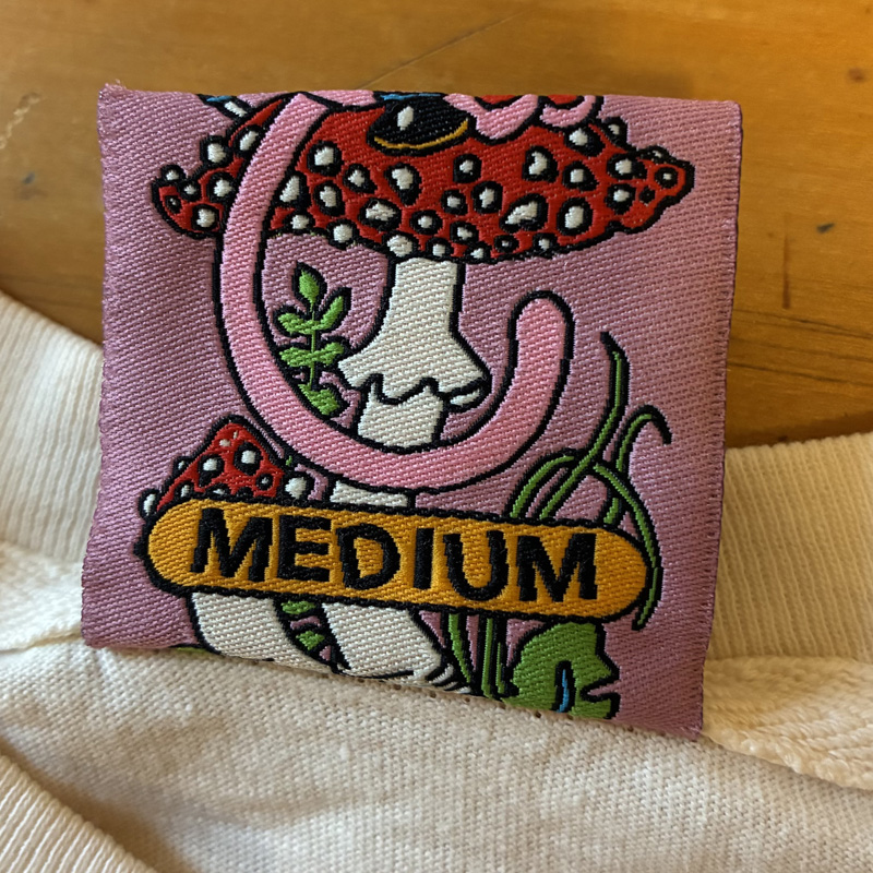 Take your favorite shirt. Lay it flat and Measure it this way. Tape Measurer? You got one somewhere? This is the updated for the Service Station Tea-Shirt please be advised We are utilizing size tag technology. So it will say your size on shirt. This time the size is STP butterfly